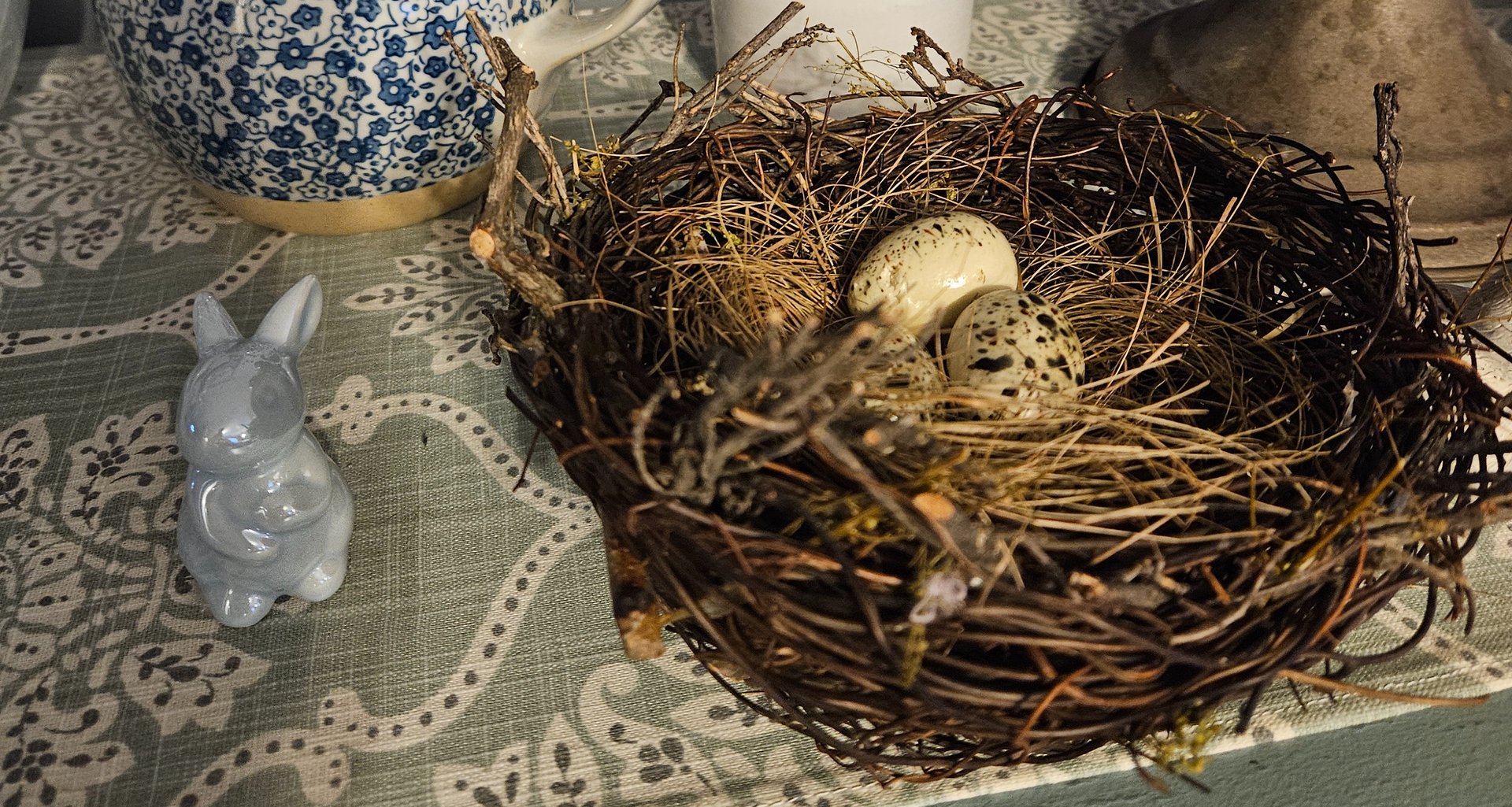 Speckled eggs – These are available in neutral tones or pastels to add to your nests. I bought these in blue and green in a variety of sizes several years ago (at a lower price back then), and here is another version. I also like this natural-looking set in neutrals.