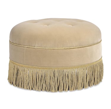 If you’re looking for a slightly larger ottoman and willing to spend a bit more, this larger fringed velvet ottoman is feminine and pretty in several colors. I love the fawn velvet option. Currently 46% off.