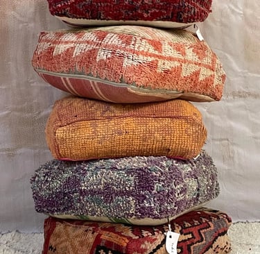 Many different types of these Moroccan poufs on Etsy feature the design outline in a contrasting thread, but I don’t prefer that style—as mentioned above, this can make the piece less versatile if you already have several patterns in a room.